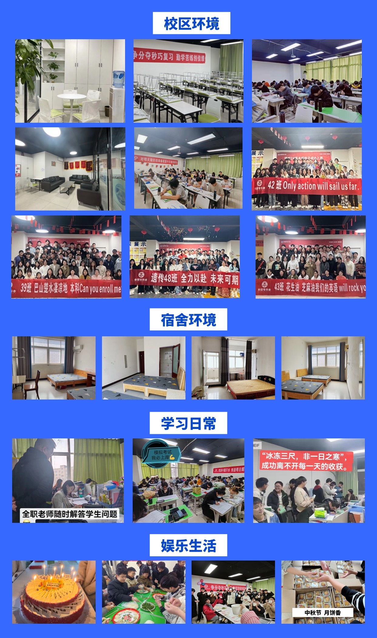 公司助力郑州、开封及周边地市多所大专院校学生顺利考入本科院校,历届上岸率、学院口碑为本地第一。